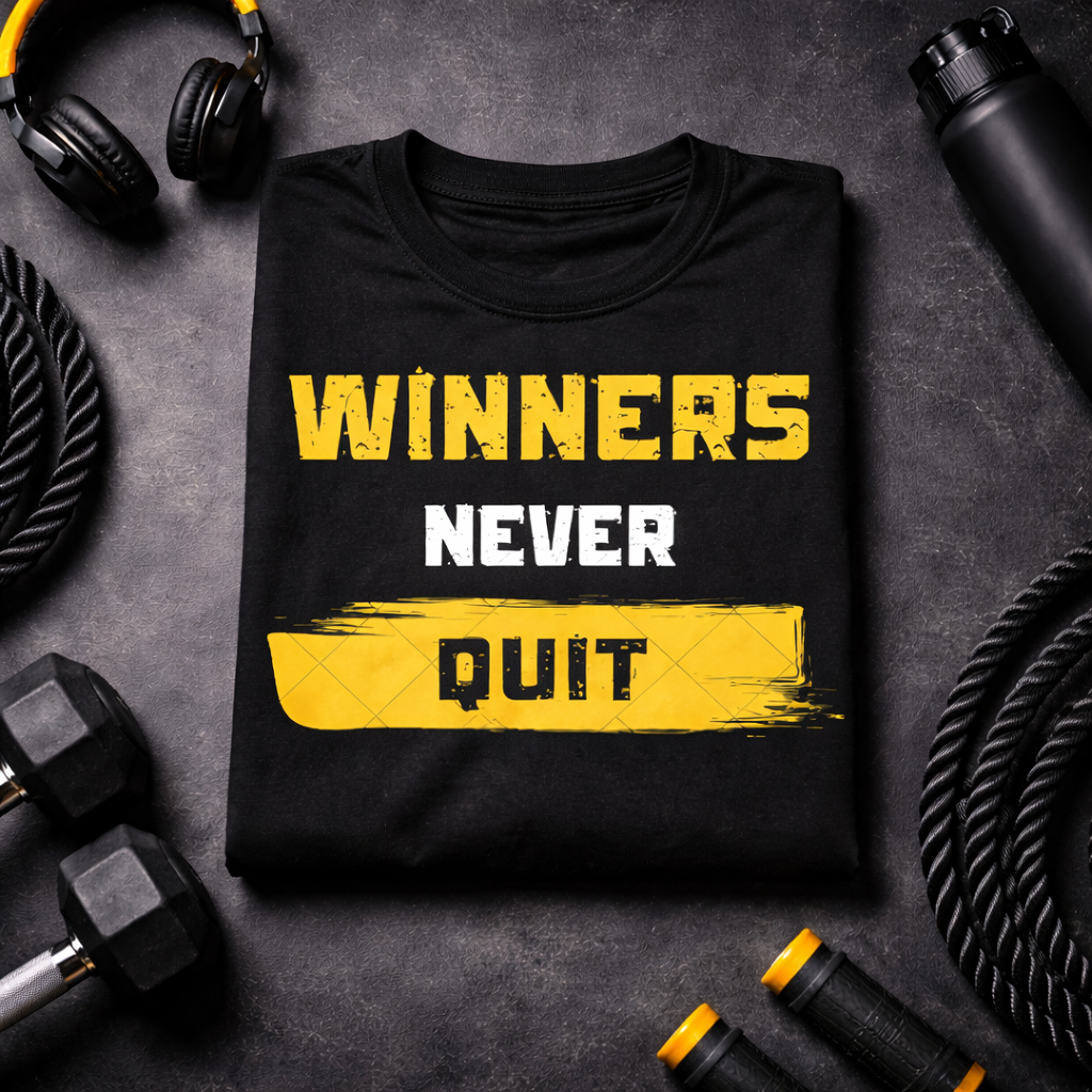 Winners Never Quit – Motivational Unisex T-Shirt